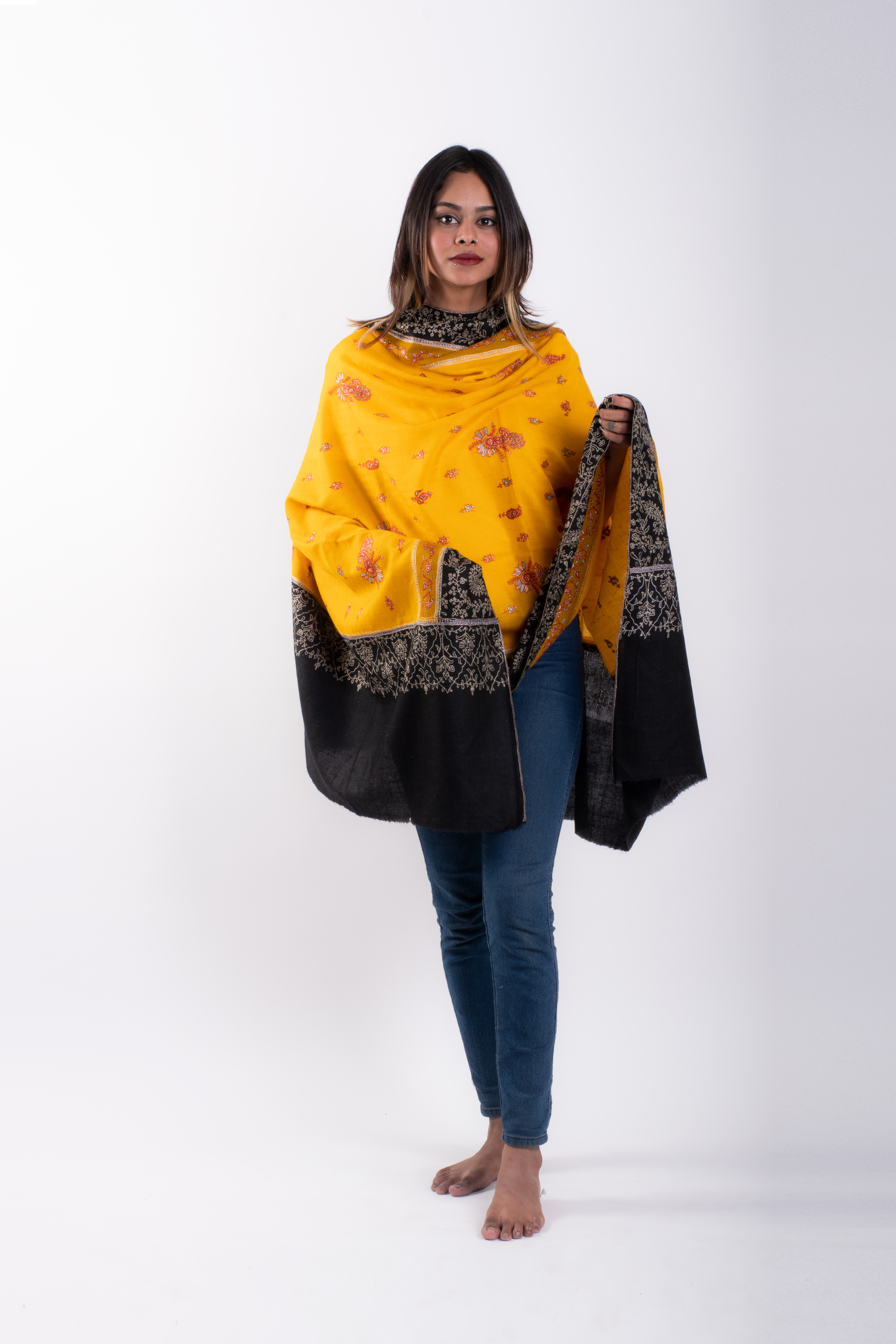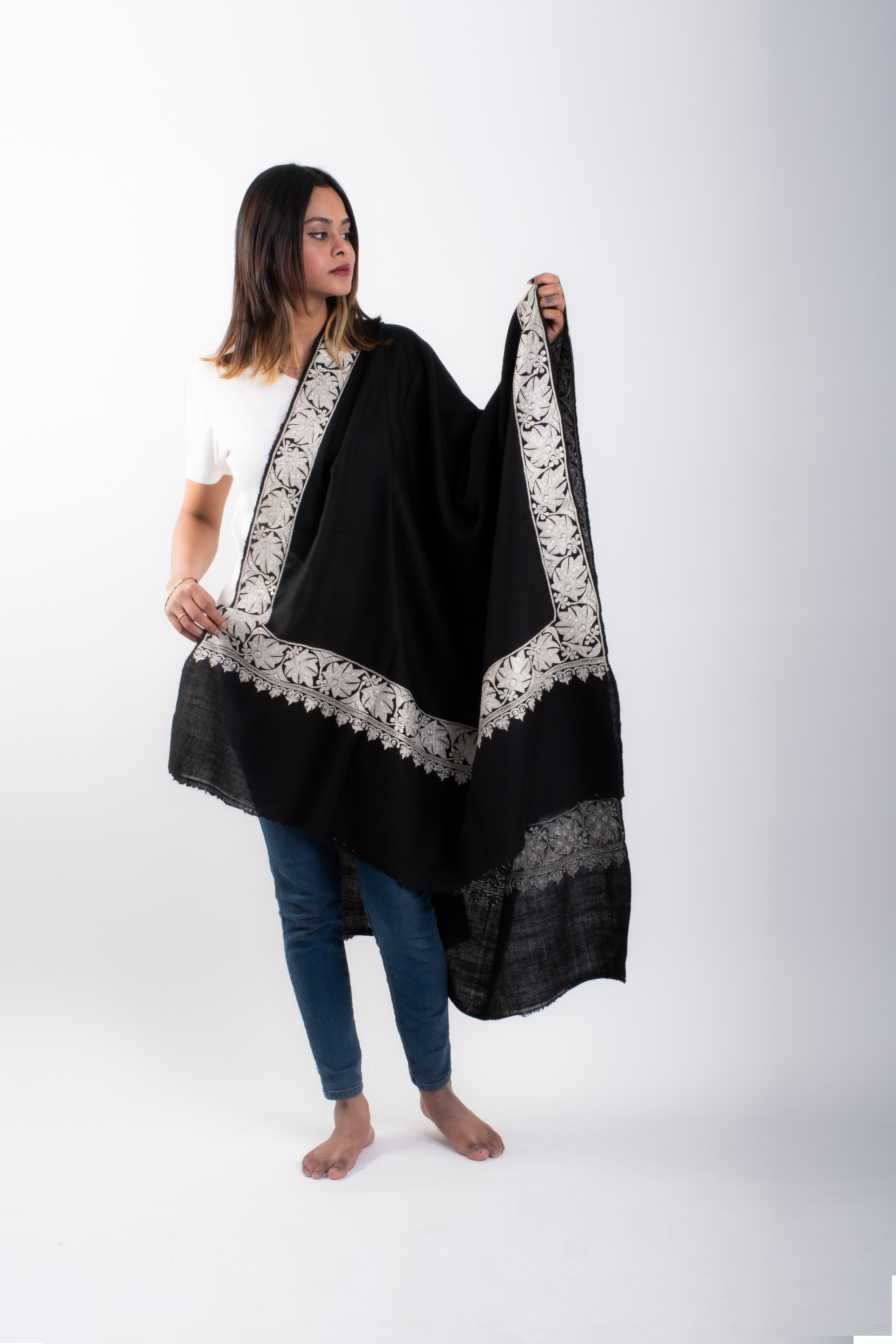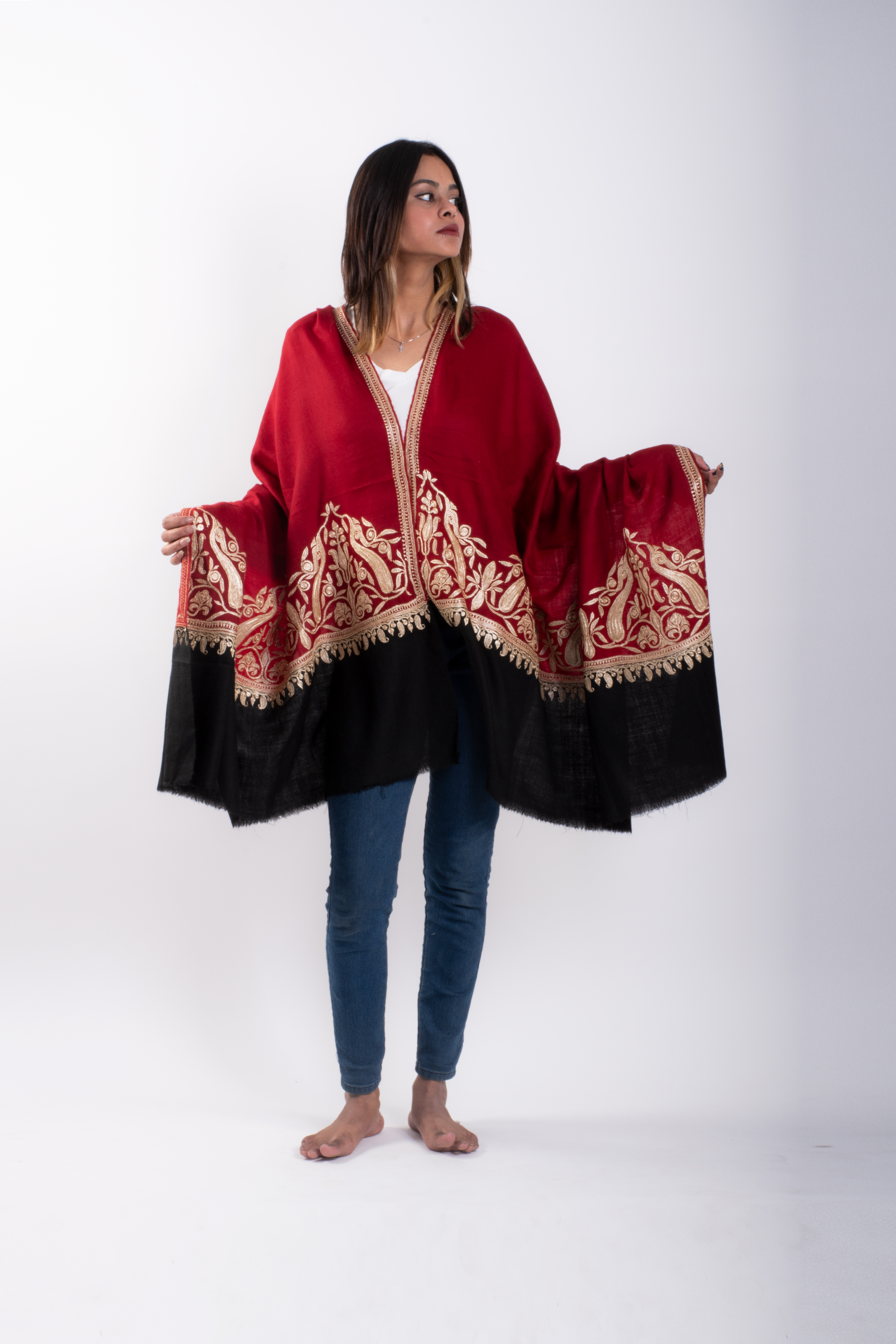 “Each shawl tells a story — woven in silence, embroidered with patience, worn with pride.”
